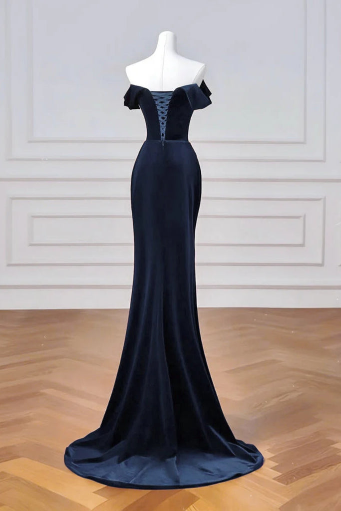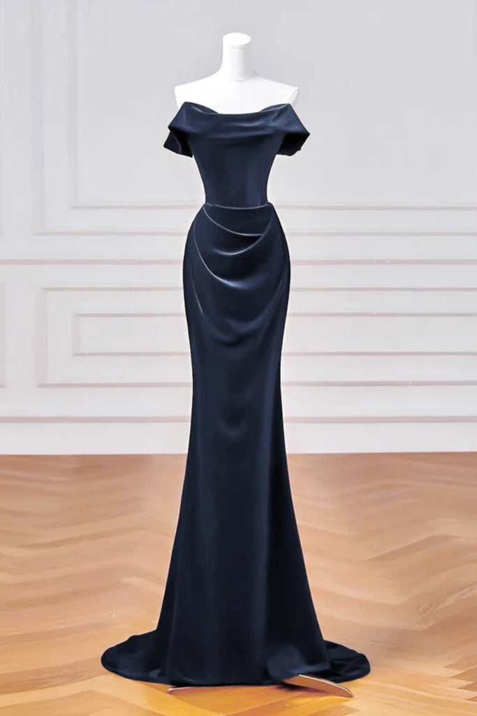 Off the Shoulder Mermaid Blue Prom Dresses, Off Shoulder Mermaid Blue Long Formal Evening Dresses