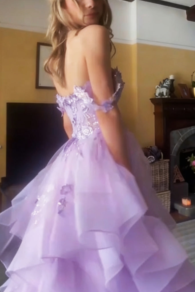 Off the Shoulder Purple Long Lace Prom Dresses, Off Shoulder Purple Long Lace Formal Dresses