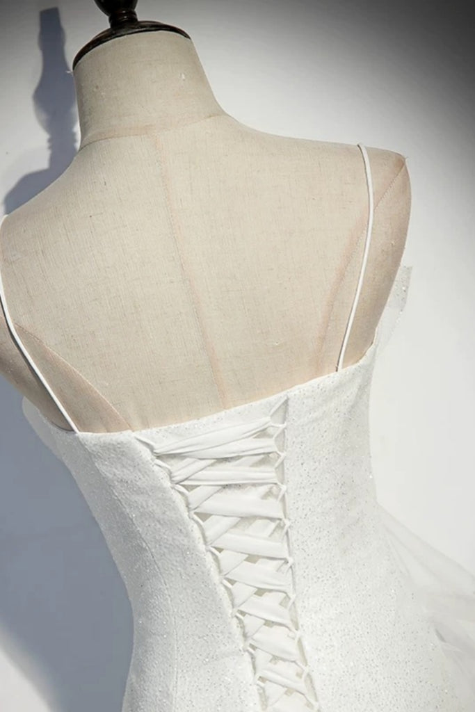 White Mermaid Long Prom Dresses, Shiny White Mermaid Long Formal Evening Dresses